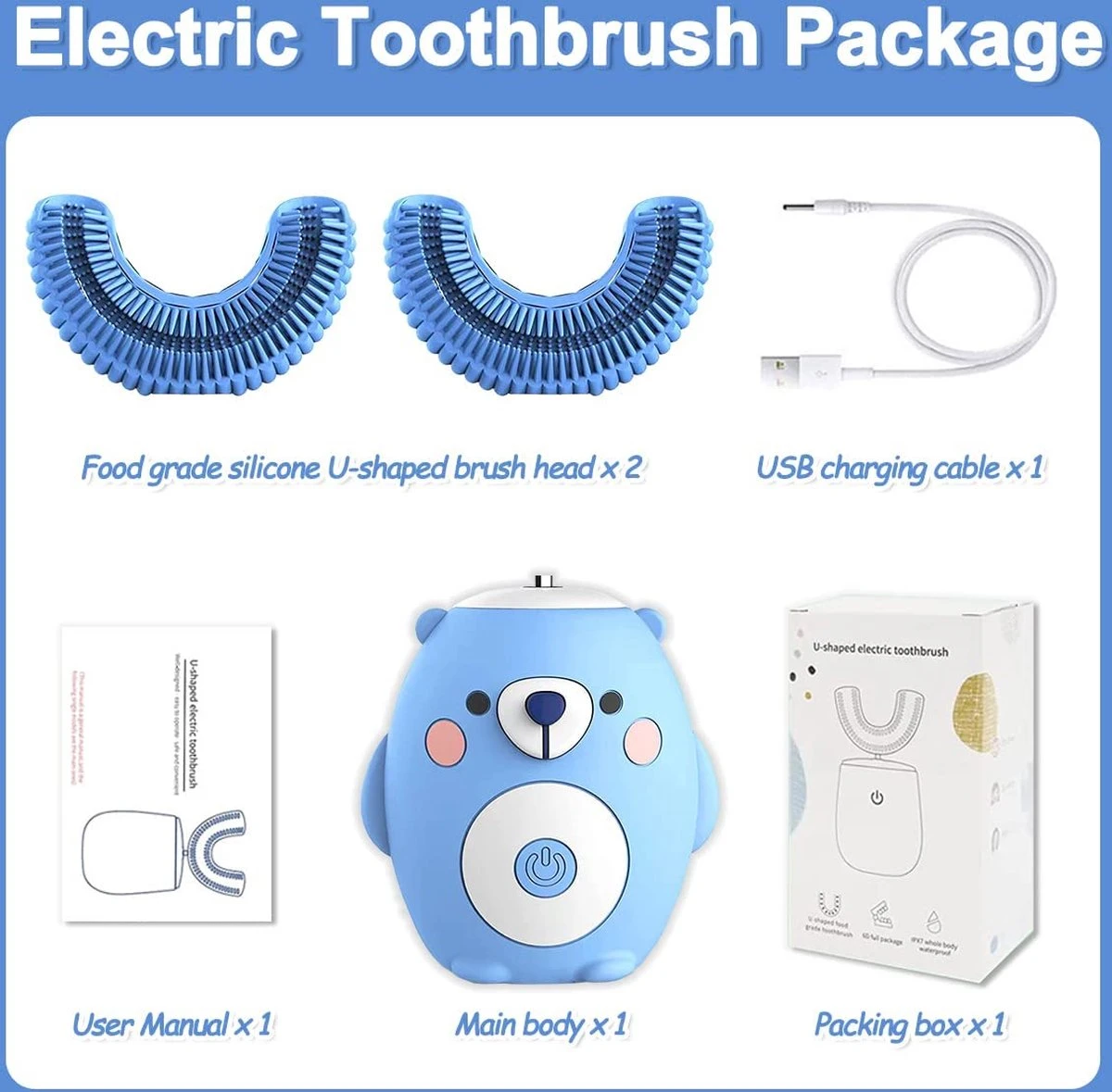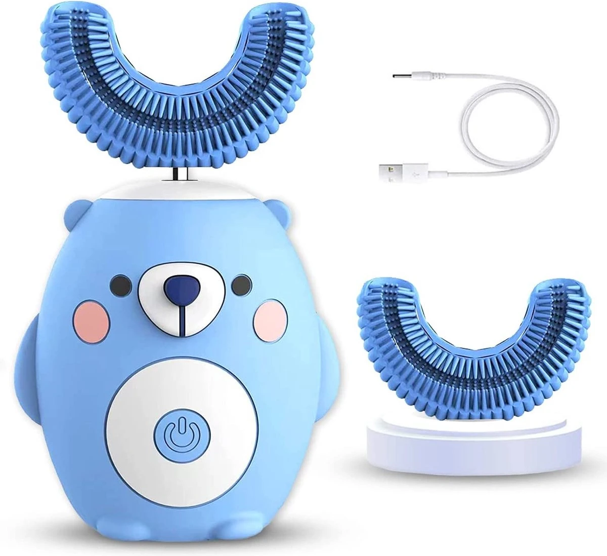 Notre dernière brosse à dents électrique est spécialement conçue pour les enfants et est le moyen idéal pour aider les enfants à conserver un sourire sain et éclatant. Cette brosse à dents est livrée avec quatre têtes de brosse, dont deux sont des accessoires en forme de U conçus pour suivre la courbure des dents des enfants. Cela rend le brossage plus facile et plus efficace.