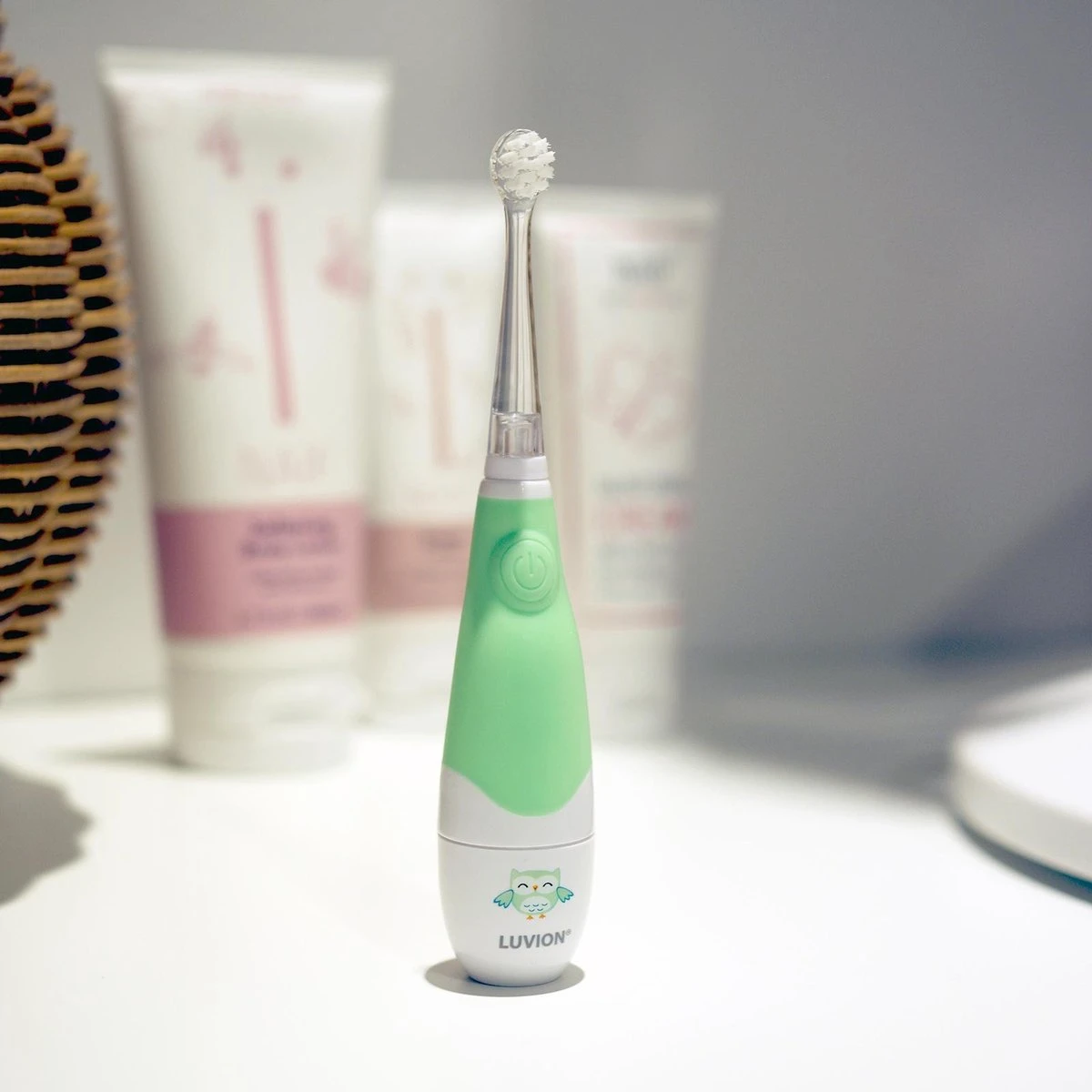 Une petite brosse spéciale est incluse pour les plus petits bébés (1-18 mois). De plus, une deuxième brosse pour les tout-petits (à partir de 18 mois) est également incluse. De cette façon, jusqu’à ce qu’ils puissent passer à une brosse à dents plus grande, vous avez toujours la bonne brosse.