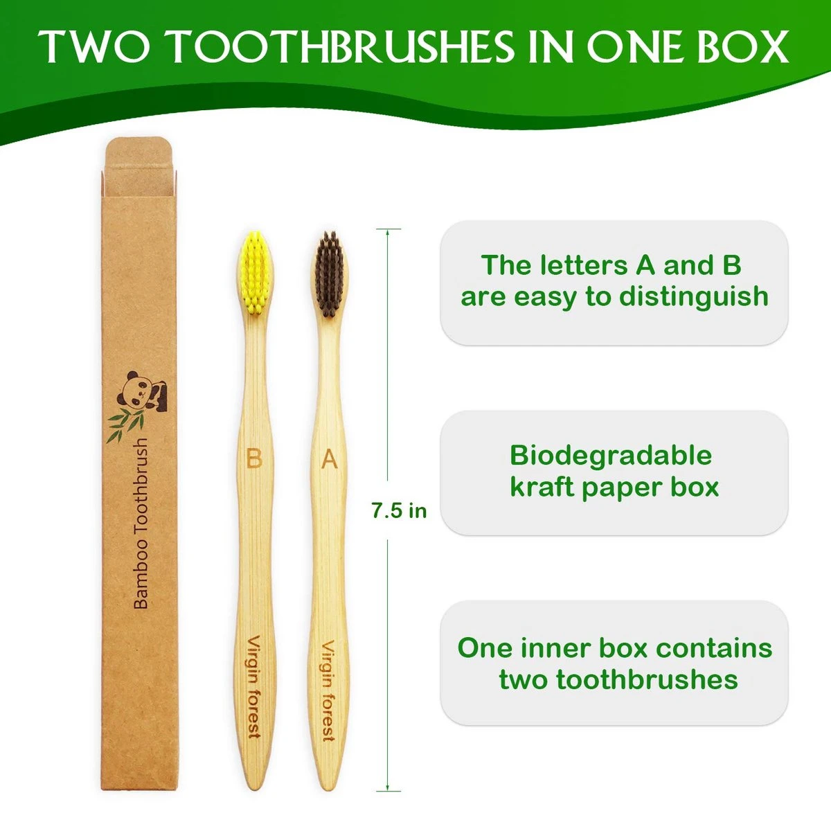 - Poils en nylon doux : les brosses à dents en bambou naturel utilisent des poils PBT super doux qui gardent vos gencives saines et vos dents blanches. Ces poils doux n’endommagent pas l’émail des dents et empêchent vos gencives de saigner ou de se gratter.
