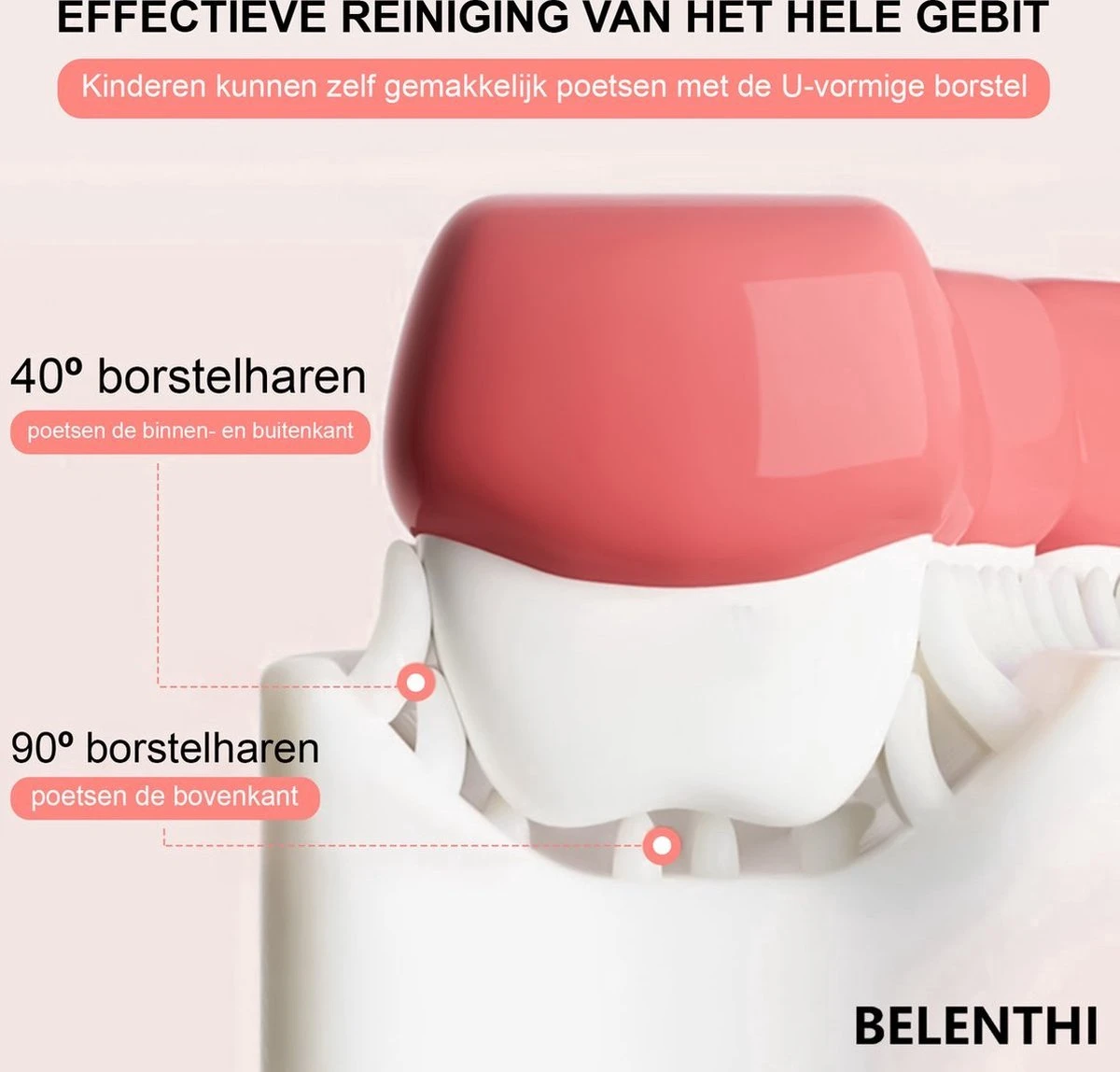 Brosse à dents pratique en forme de U pour les enfants de 6 à 12 ans. La brosse à dents souple en forme de U de Belenthi est fabriquée en silicone de haute qualité, ce qui facilite le nettoyage manuel de toutes les dents de votre enfant. Le produit est spécialement conçu pour les dents sensibles des enfants.