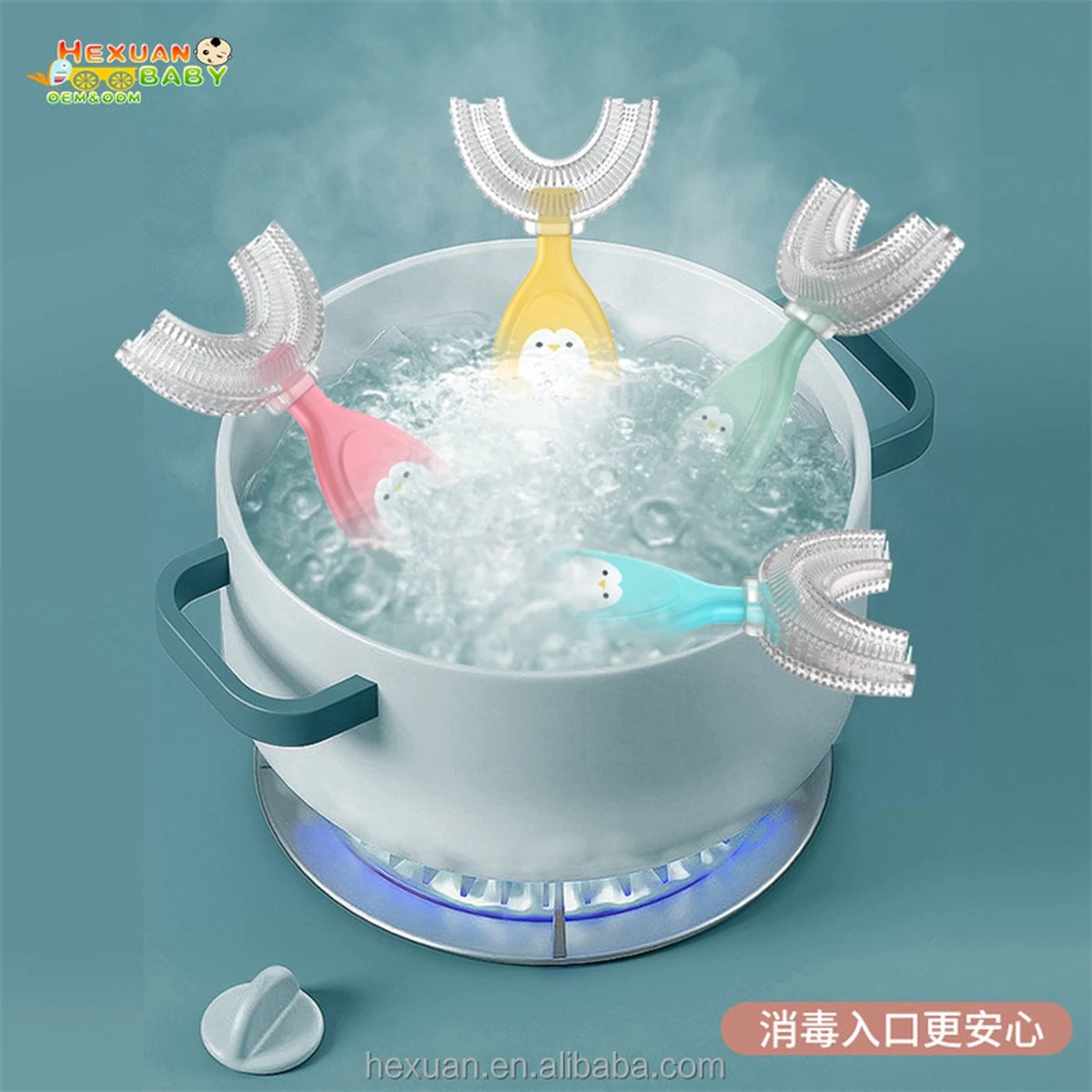 Avec la brosse à dents en U, le bébé a une sorte d’anneau de dentition dans la bouche, il nettoie immédiatement ses dents et ses gencives