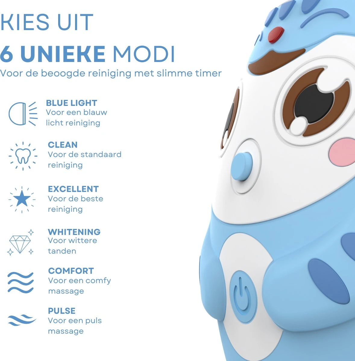 Cette petite aide est résistante à l’eau, rechargeable, facile à nettoyer et est fournie avec une tasse et une mousse tandpasta pour un résultat optimal. Bien sûr, vous êtes libre d’utiliser votre eigen tandpasta de confiance.
