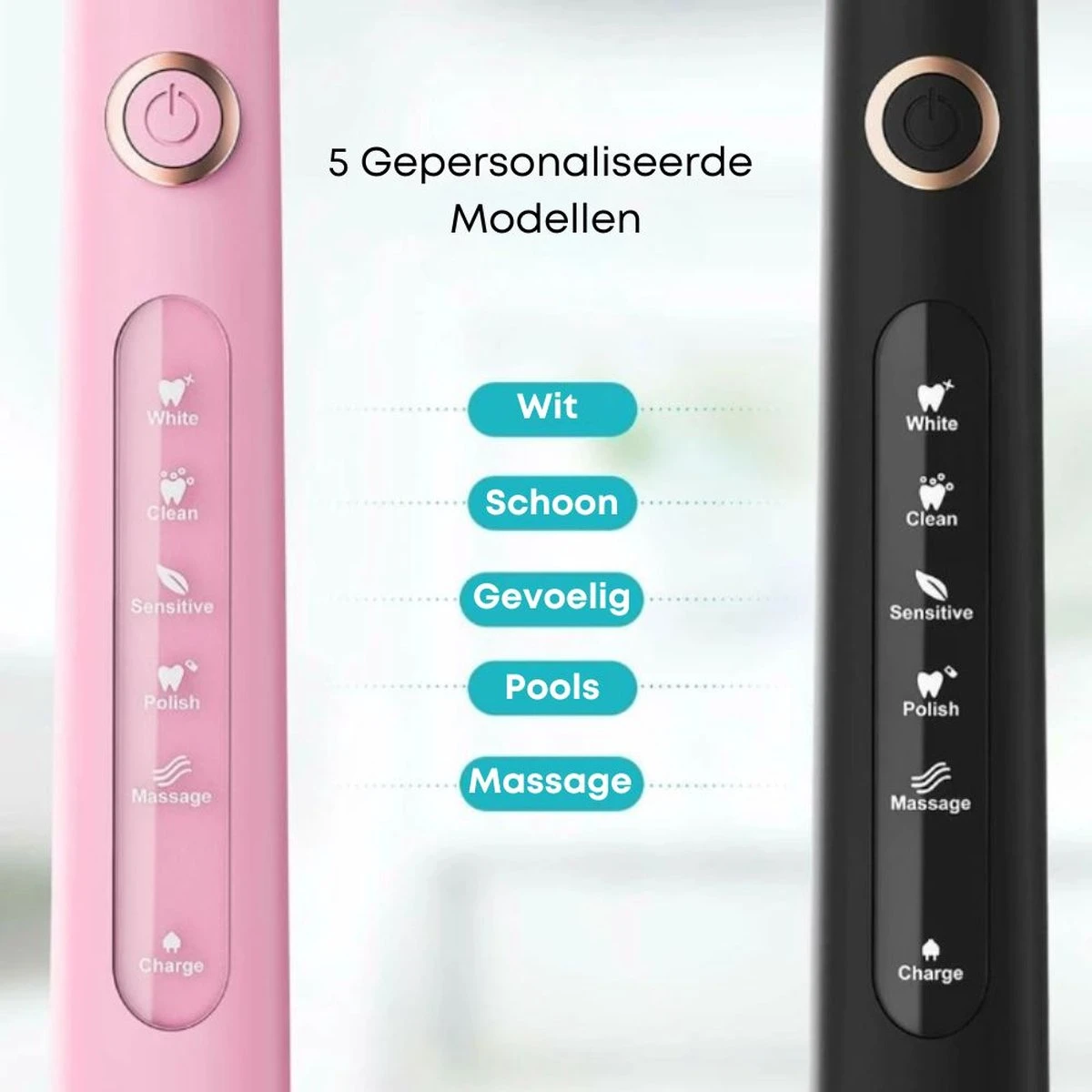 Avec 5 modes de brossage différents, vous pouvez choisir entre blanc, propre, sensible, poli et message pour une expérience de brossage améliorée.