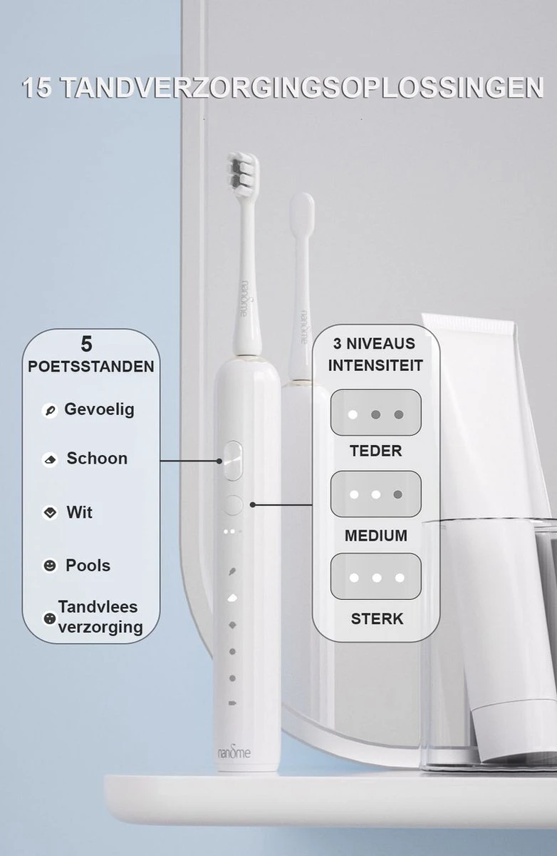 Lumière Blauw : Pour éliminer les taches de surface. Lumière verte : pour le nettoyage quotidien. Lumière Blauw : pour éclaircir et polir les dents. Green Flash: Pour un Massage Doux