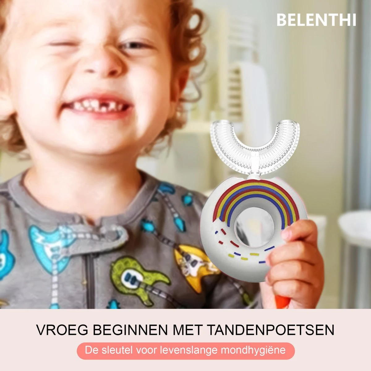 La conception de la tête de brosse en forme de U nettoie les dents de vos enfants. Il facilite le nettoyage des dents pour le bébé. Il garantit des dents plus propres sous tous les angles et rend les cavités buccales plus saines. Un moyen efficace de se brosser les dents avec un outil amusant aide les enfants à créer des habitudes saines pour la vie.