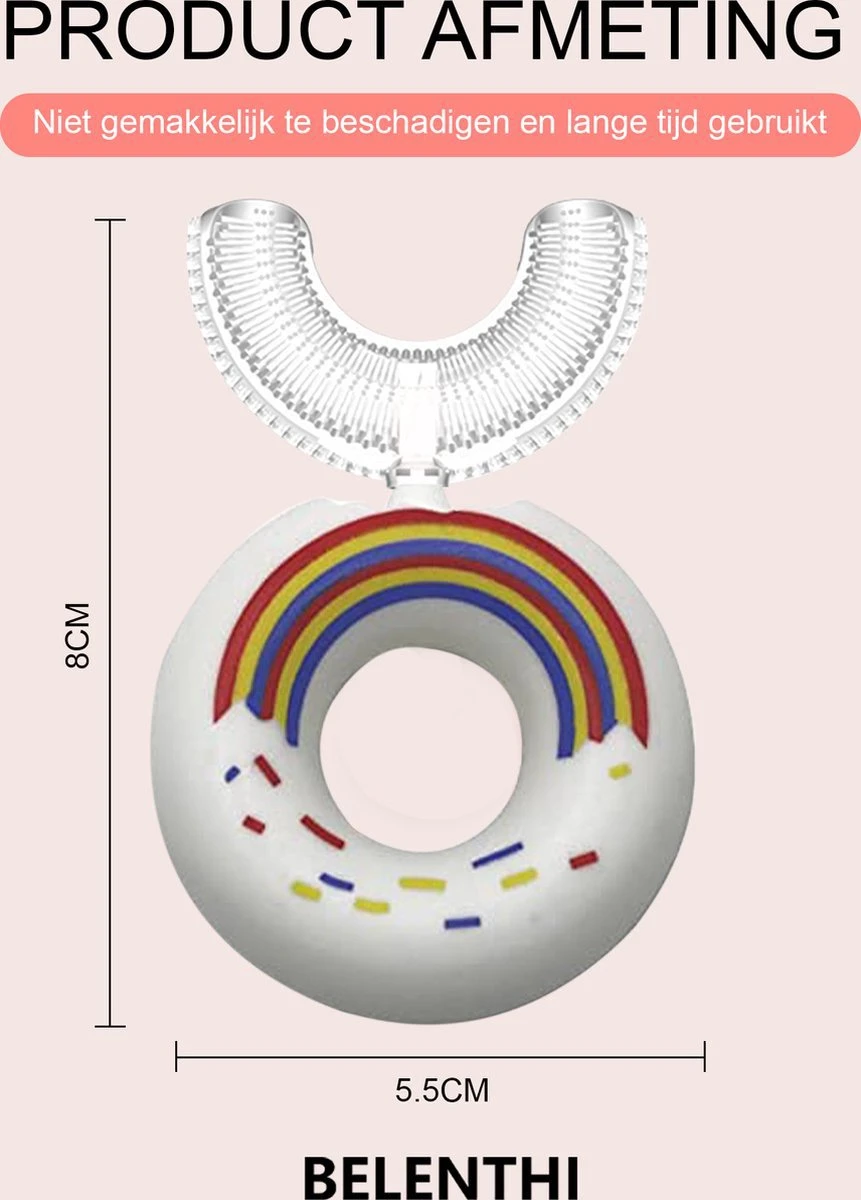 C’est facile à utiliser. Vous mettez du tandpasta dessus et le bébé le secoue dans sa bouche pour se brosser les dents. La tête de brosse peut facilement atteindre tous les coins, ce qui facilite le brossage des dents. Protégez votre (vos) enfant(s) des dents et des gencives sensibles avec la brosse en silicone souple. Il convient aux enfants de 2 à 12 ans.