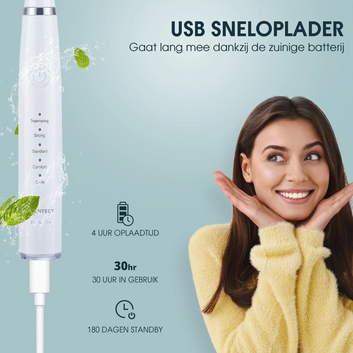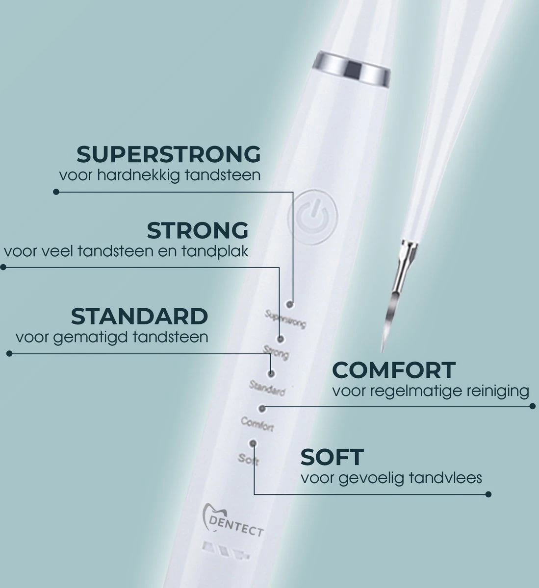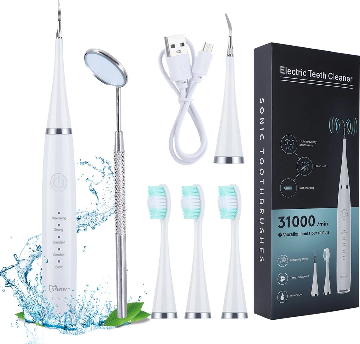 Il est extrêmement important de bien prendre soin de ses dents. Non seulement en se brossant bien les dents, mais aussi en enlevant régulièrement le tartre. Cela vous permet de profiter d’un sourire radieux et aussi d’économiser de l’argent sur une hygiéniste dentaire ! Le détartreur a 5 réglages différents et fait jusqu’à 31 000 vibrations par minute. Cela vous permet de profiter d’une haleine fraîche et de dents saines en quelques minutes !