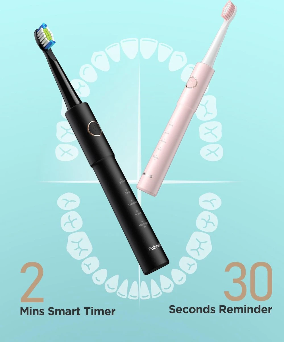 La brosse à dents électrique E11 de Fairywill, c’est le dernier modèle conçu en 2020 avec la dernière technologie de brosse à dents que le temps a à offrir. Doté d’une technologie de brosse à dents électrique de pointe, le E11 de fairywill délivre 40 000 coups par minute de puissante puissance vibratoire. Le Fairywill E11 est livré avec 8 TÊTES DUPONT qui durent 2 ans. Dans l’ensemble, il s’agit d’une expérience de brossage des dents améliorée par rapport aux autres brosses à dents électriques sur le marché aujourd’hui.