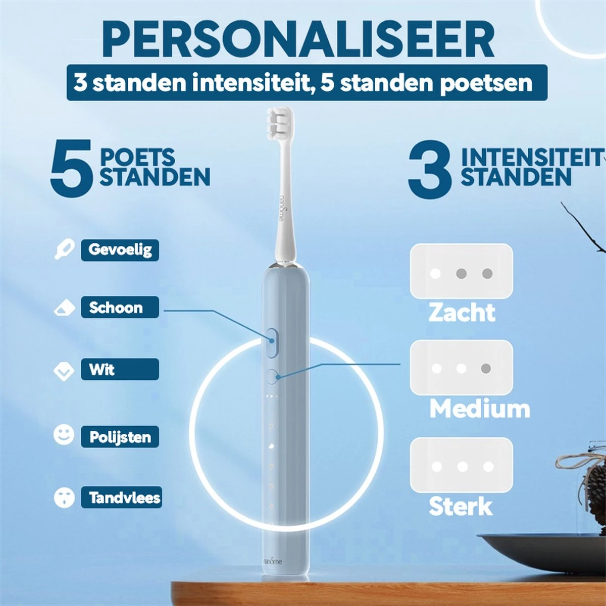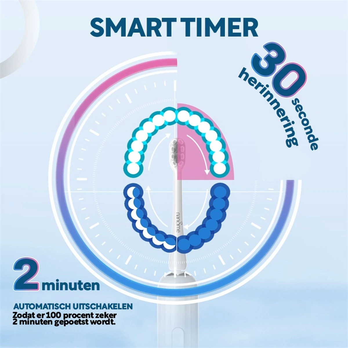 Donc, si vous cherchez une brosse à dents qui fera passer votre santé bucco-dentaire au niveau supérieur, notre brosse à dents électrique avancée est le choix parfait voor jou. Avec 15 réglages différents et 2 têtes de brosse incluses, vous obtenez un nettoyage complet et un sourire sain qui dure !