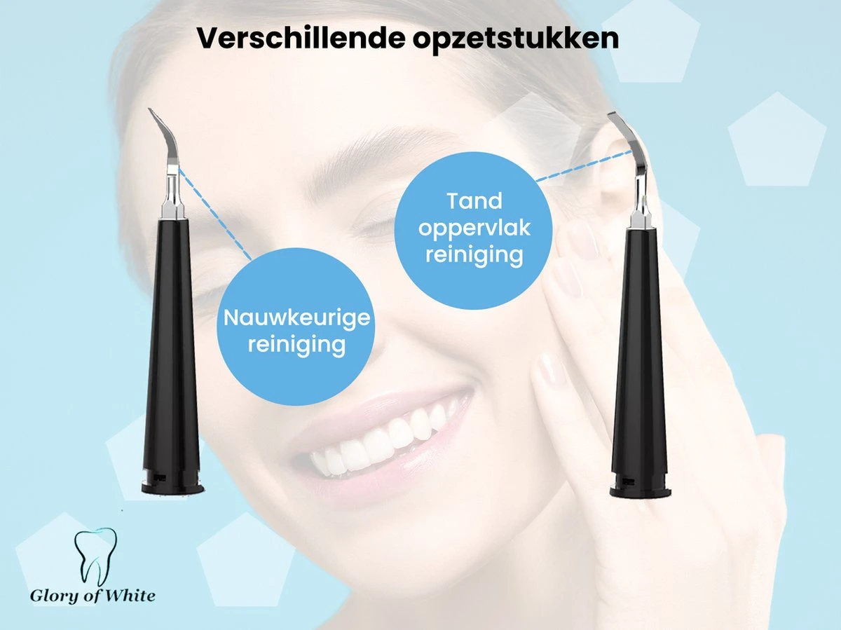 Il est généralement connu que de bons soins bucco-dentaires sont extrêmement importants pour prévenir les problèmes dentaires et bucco-dentaires. La plaque et/ou le tartre peuvent facilement se former, mais ne peuvent malheureusement pas être éliminés par un bon brossage. C’est pourquoi il est important de prévenir l’accumulation de tartre en visitant régulièrement le dentiste ou en vous nettoyant vous-même les dents avec un détartrant. Pour de meilleurs résultats, votre détartrant est livré avec différentes têtes pour le nettoyage spécifique du tartre, de la surface des dents et des gencives.