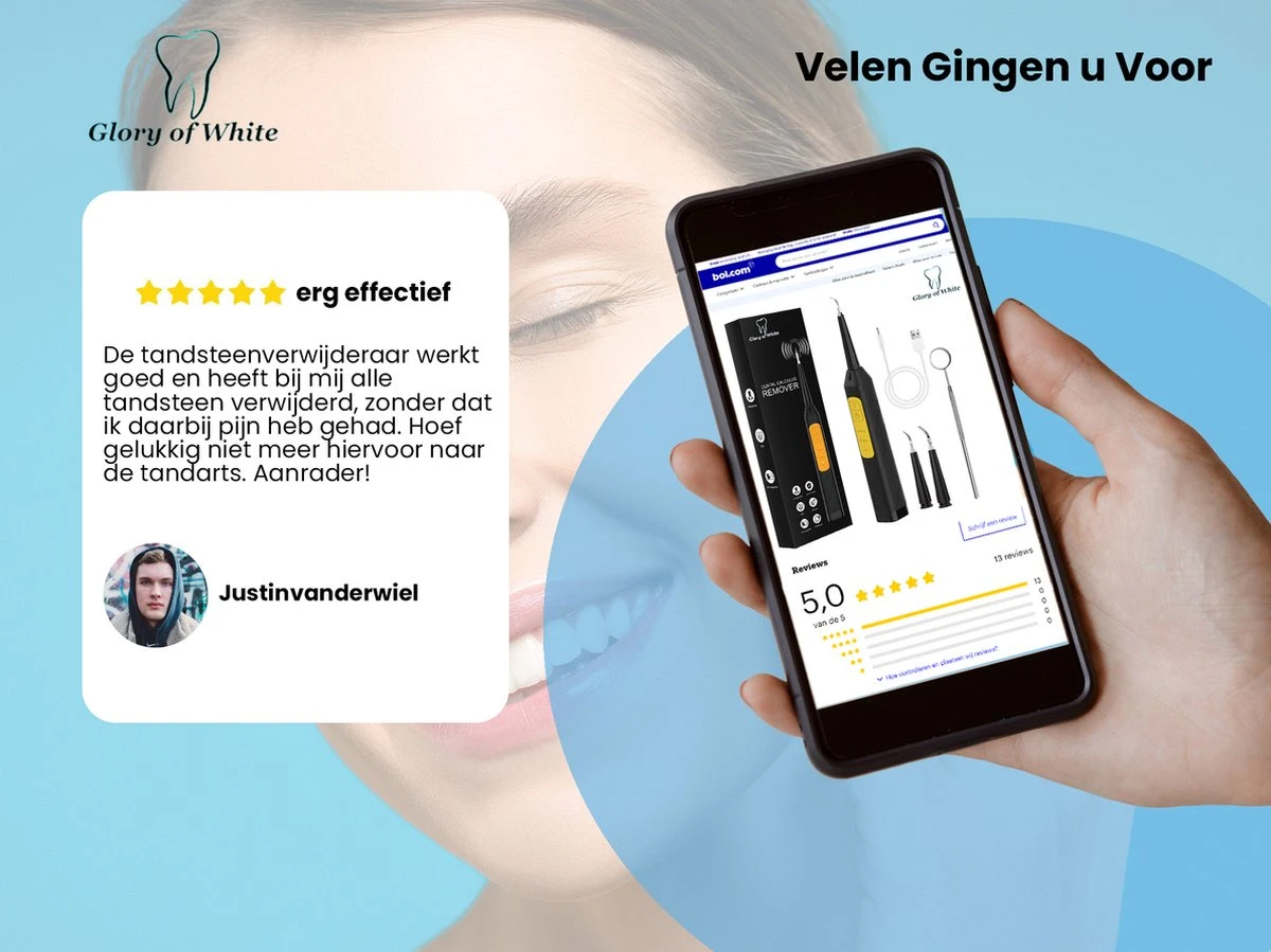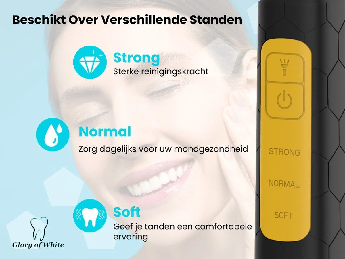 Alors notre dissolvant de tartre professionnel de Glory of White est exactement ce que vous cherchez ! Le nettoyant pour prothèses dentaires est fabriqué dans un matériau durable et ultra léger dans la main, ce qui le rend idéal pour une utilisation quotidienne. Les 3 positions différentes permettent de traiter à la fois les zones sensibles et le tartre tenace,