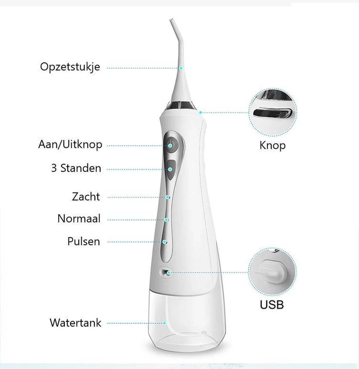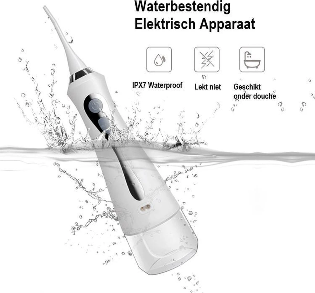 L’ Goods Dental Goods garde vos dents fortes et saines. Avec 1400 à 1800 impulsions d’eau par minute, 99,9 pour cent de tous les résidus alimentaires et de la plaque dentaire sont éliminés. Débarrassez-vous des maladies des gencives, de la décoloration des dents ou de la mauvaise haleine. L’hydropulseur (irrigateur oral) a été cliniquement prouvé pour contribuer à des dents plus saines et plus fortes. Un irrigateur oral est parfait pour les personnes qui veulent des dents fraîches et saines. L’hydropulseur peut également être utilisé sous la douche car il est étanche IPX7. De plus, l’hydropulseur est rechargeable et sans fil.