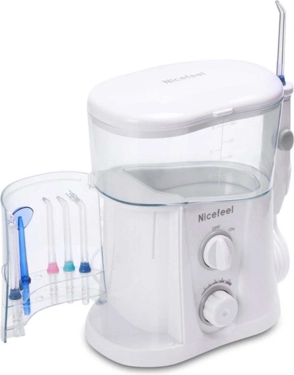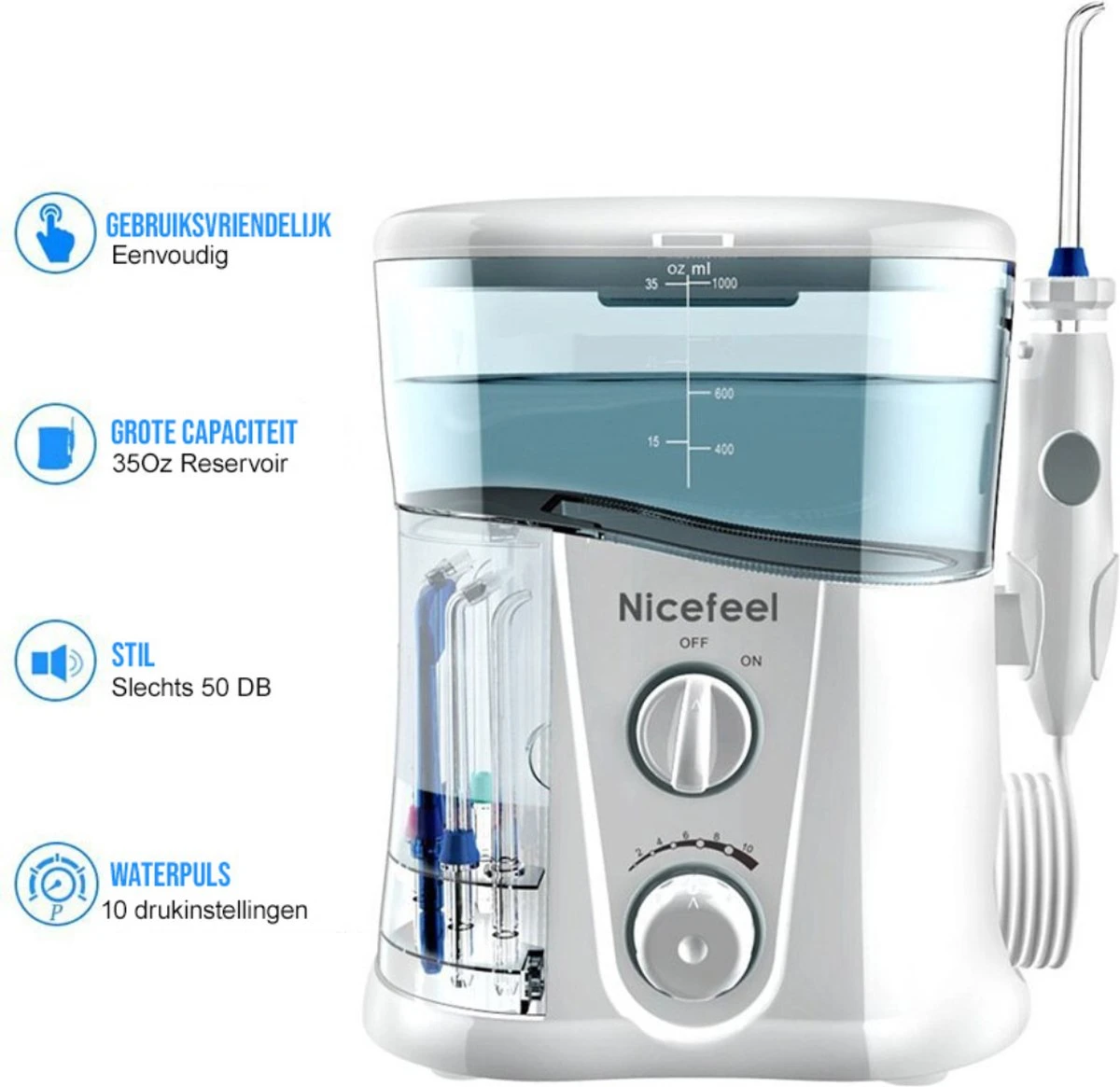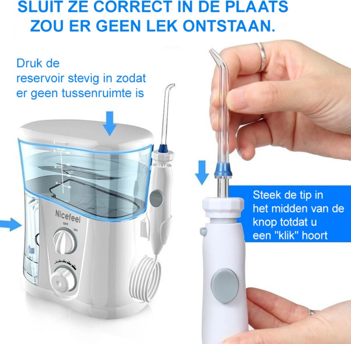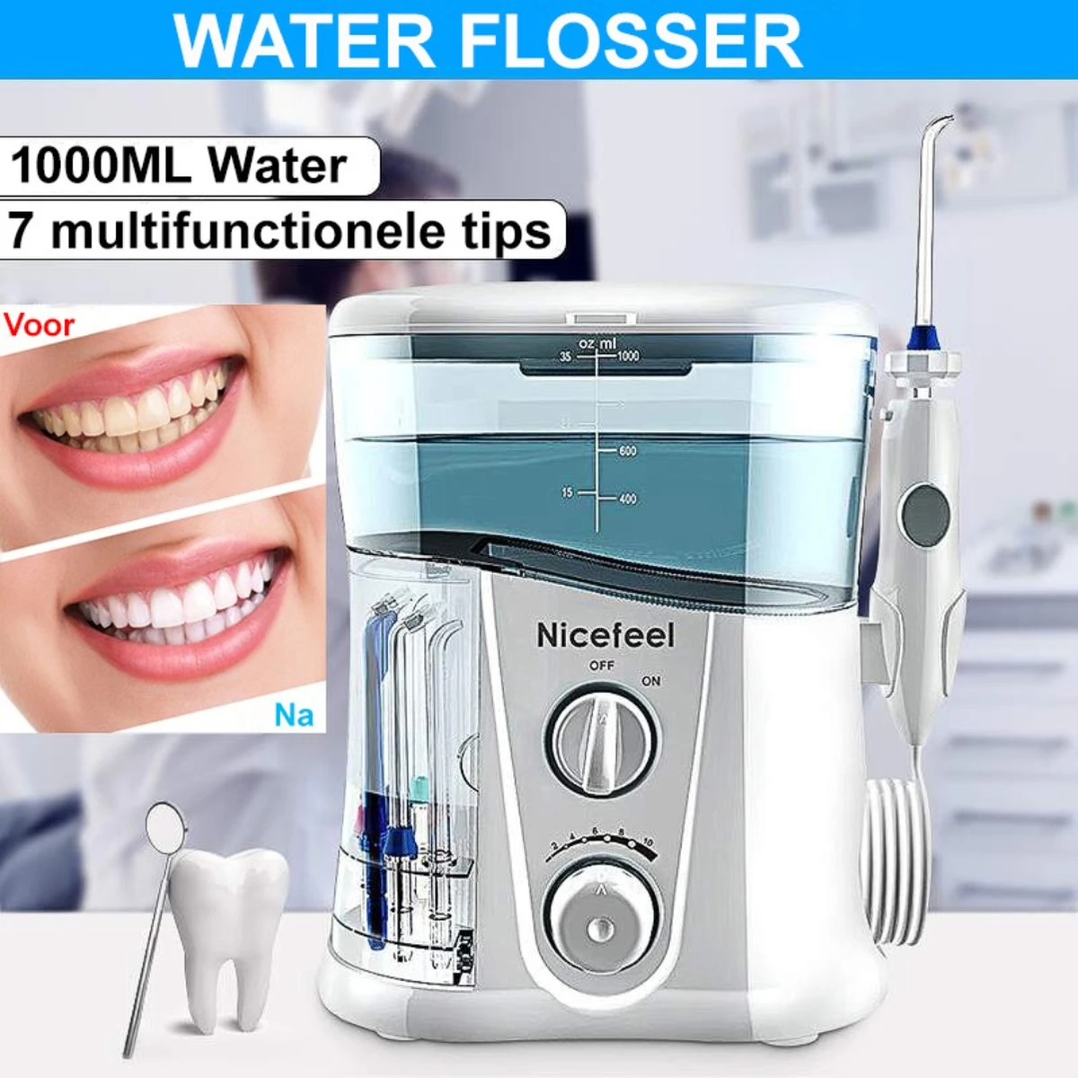 Beaucoup de saleté entre vousles dents ? Avec lehydropulseur deBoulon faites-vousrapidement nettoie tes dents! La combinaison de l’eau et de l’air assure un nettoyage optimal de votreles dents ,appareils dentaires ,les implants ouCouronne –etpontage . Avec leirrigateur buccal améliorez votre hygiène bucco-dentaire et exfoliez vos gencives avec santé en un rien de temps. Lahydropulseur aDix les typespostes . Vous pouvez choisir la force avec laquelle vous voulez utiliser la soie dentaire ! L’hydropulseur estimperméable ! Avec un contenu de1000ml vous avez toujours assez d’eau pour passer la soie dentaire !