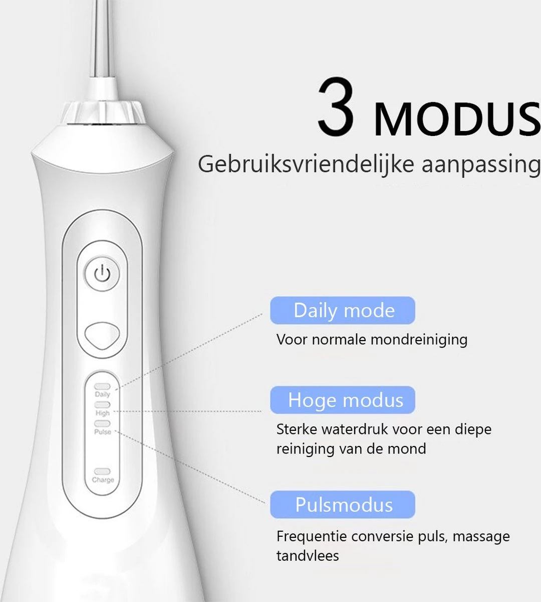 Paramètres personnalisables : Avec trois modes différents (normal, doux et pulsé), vous pouvez adapter votre expérience de nettoyage à vos besoins spécifiques. Que vous ayez les dents sensibles ou que vous ayez simplement besoin d’un nettoyage en profondeur, cet hydropulseur a tout pour plaire.