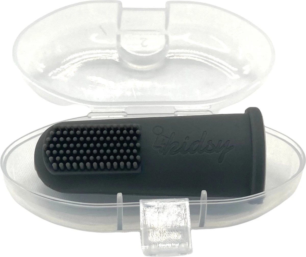 Les poils doux en silicone de qualité alimentaire vous permettent de bien nettoyer les dents, mais en même temps, vous pouvez également masser les gencives. La brosse à dents double face Kidsy Baby Finger a une surface texturée qui masse l’intérieur des joues et des gencives sensibles de bébé pour soulager la douleur. La brosse à dents en silicone s’adapte sur un doigt adulte et est facile à glisser