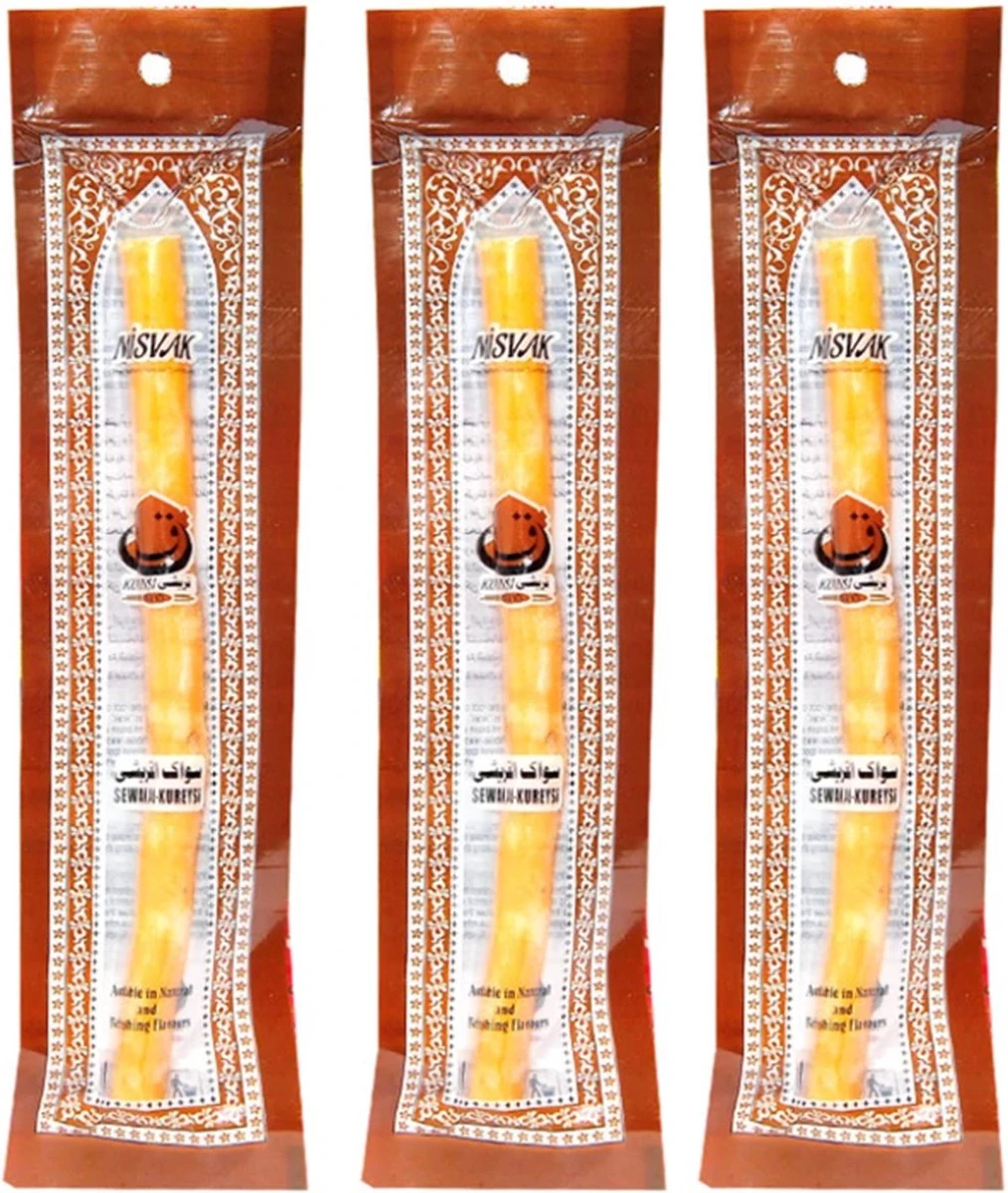 « Sewak Al-Qurayshi » ou « Miswak » est la racine de l’arbre Peelu (Salvadora Persica), connu en arabe sous le nom de « arak ». Comparé aux brosses à dents synthétiques, le miswak est plus sûr et plus naturel. Les poils doux du Miswak pénètrent beaucoup plus facilement entre les dents, ce que les brosses à dents standard ne peuvent généralement pas. Miswak est un moyen efficace d’atteindre un haut niveau d’hygiène bucco-dentaire qui est directement lié à la santé générale du corps.
