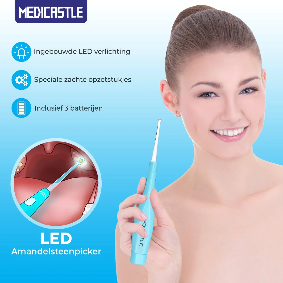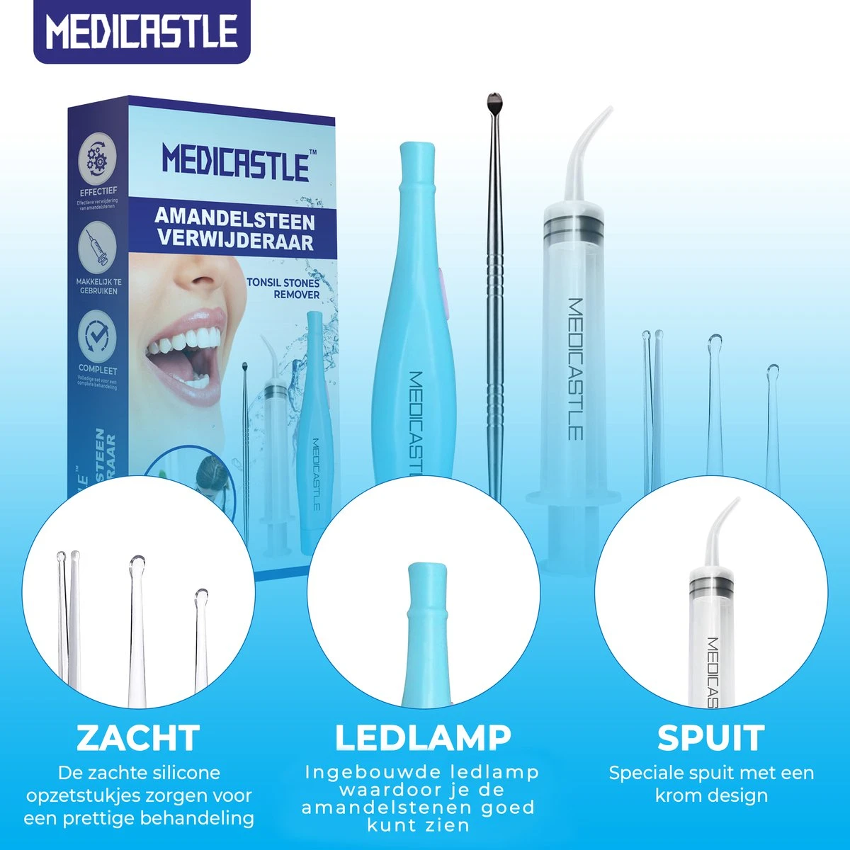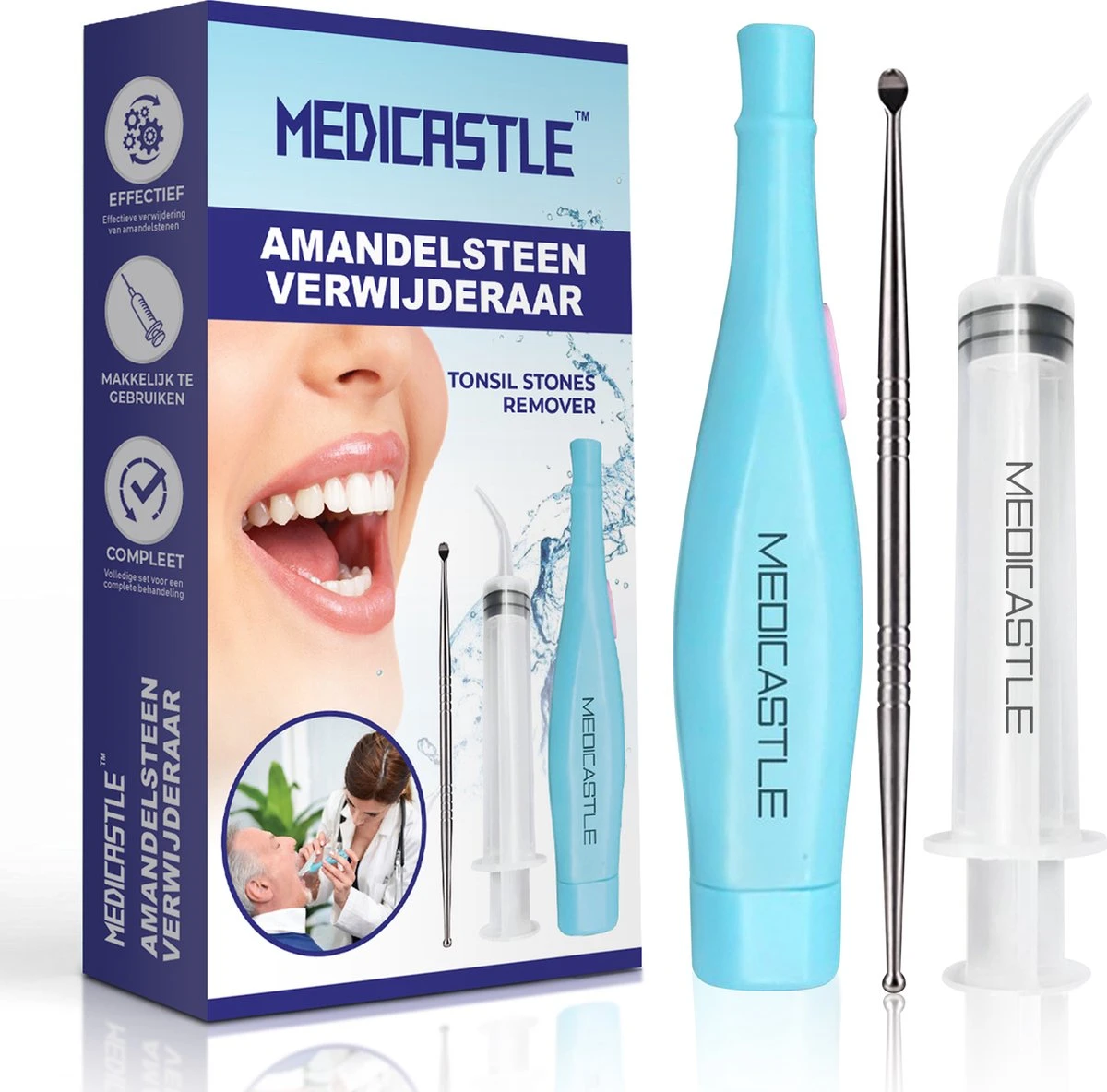 Le kit d’élimination des amygdales MediCastle™ Premium vous permet d’enlever rapidement et en toute sécurité les amygdales. Débarrassez-vous de la mauvaise haleine !