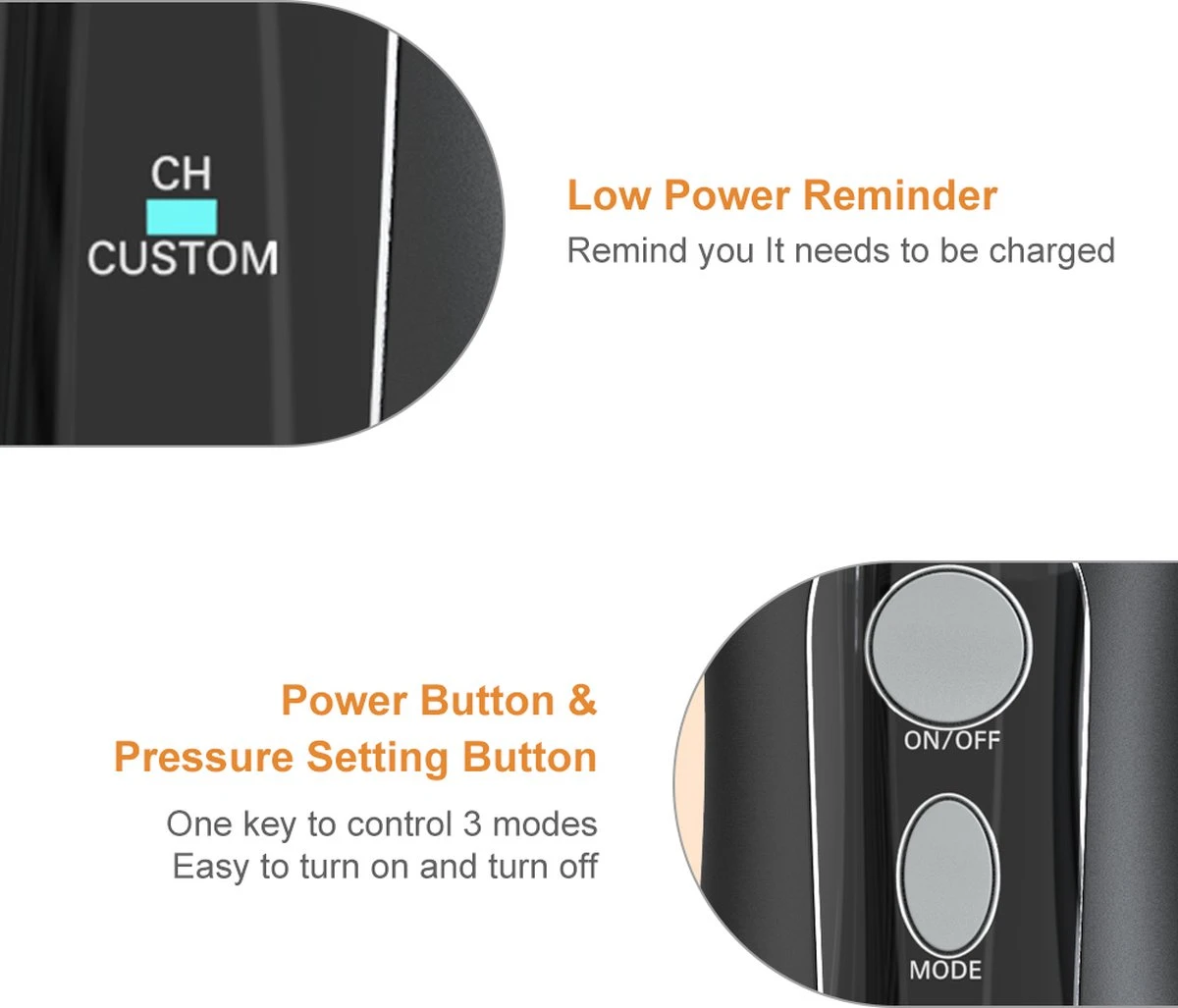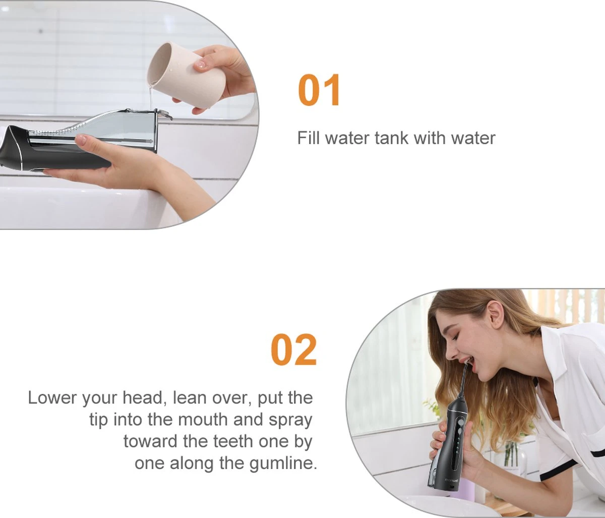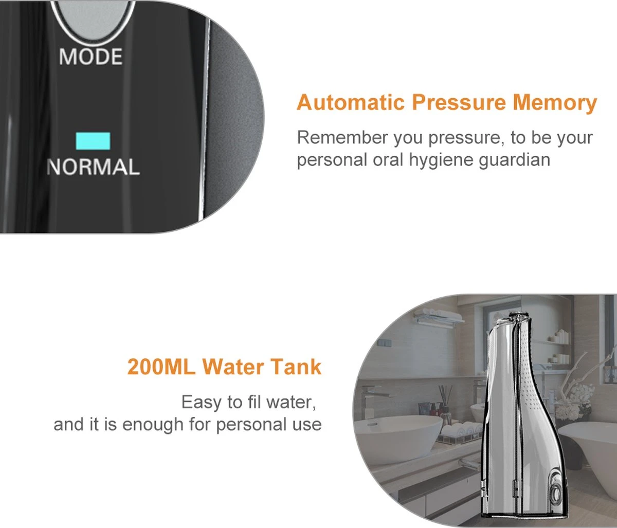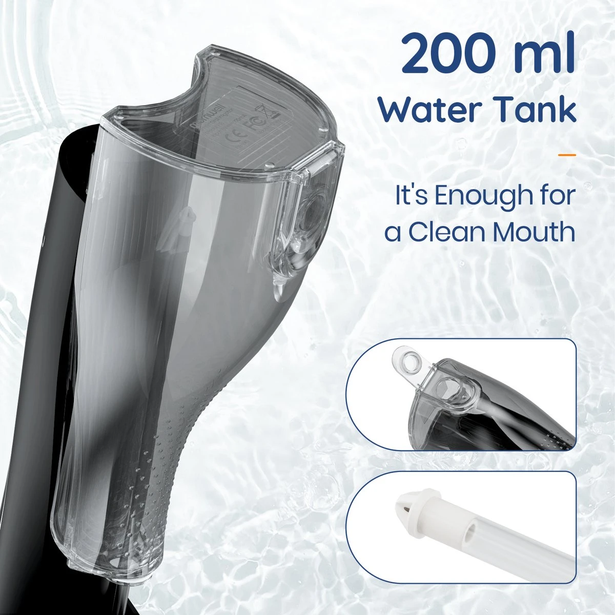 Cet hydropulseur est également livré avec5 pinceaux différents , y compris un embout à jet classique, un gratte-langue, un embout orthodontique, un embout parodontal et un embout pour plaque, vous offrant une expérience de nettoyage complète. Ilréservoir d’eau de 200 ml offre une durée d’utilisation plus longue afin que vous puissiez passer la soie dentaire sans interruption.