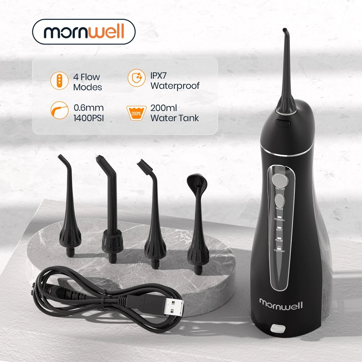 Dites adieu à la soie dentaire traditionnelle et passez au Mornwell Water Flosser pour un moyen plus efficace de maintenir votre hygiène buccale. Que vous ayez des appareils orthodontiques, des implants ou que vous souhaitiez simplement améliorer votre santé bucco-dentaire globale, cet hydropulseur est l’outil parfait pour vous.