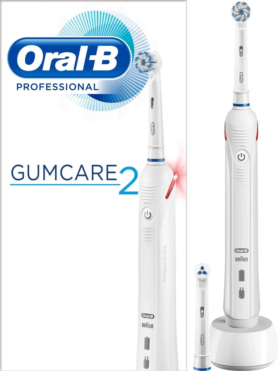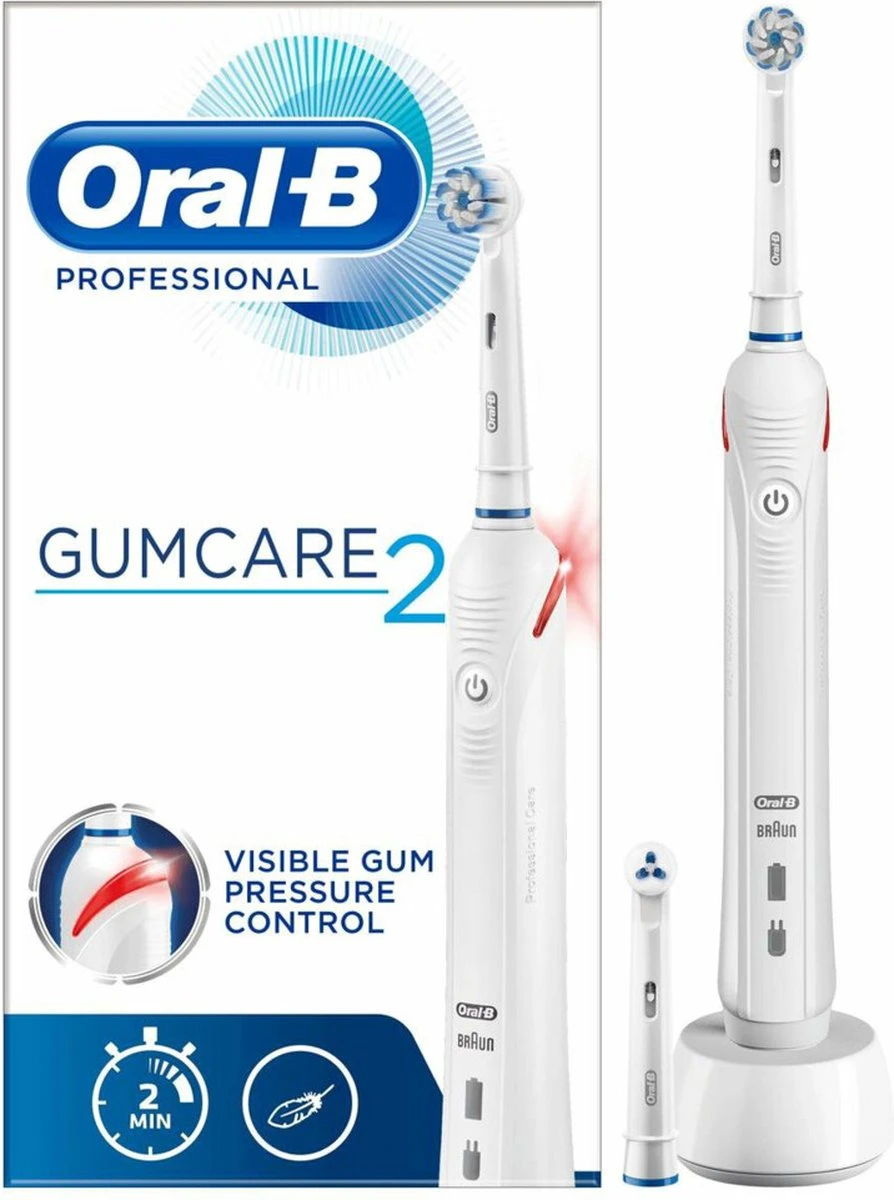 Gumcare 2 avec manche offrant un contrôle de la pression sur les gencives réduit la vitesse du brossage et émet un signal visuel pour que vous brossiez moins fort si vous exercez une pression trop élevée. Sa tête ultra-fine sensible protège les gencives et nettoie en douceur le sillon gingival, alors que la brossette interdentaire offre un nettoyage interdentaire supplémentaire, éliminant encore plus de plaque dentaire entre les dents.