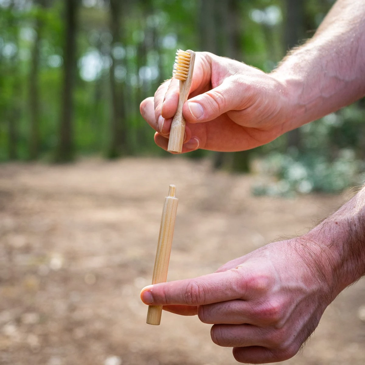 Matériau poils de sanglier : Composition en fibres de bambou (39 % de nylon, il n’existe pas de brosses à dents avec des poils 100 % naturels, car les enzymes dans la bouche ne durent pas longtemps).