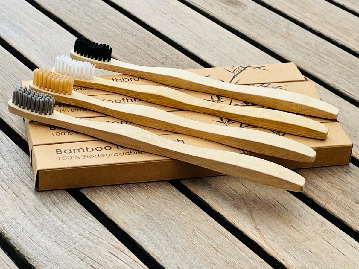 Ces brosses à dents durables sont fabriquées en bambou et ont une conception de brosse unique qui offre une force dynamique aux différents poils. Cela crée une différence naturelle dans la dureté des poils qui fait en sorte que les poils viennent à différents endroits sur les dents et cela avec une différence de force. Cette combinaison assure une hygiène dentaire optimale et est 100% Eco-friendly. Les brosses à dents sont livrées dans un pack de quatre brosses de quatre couleurs différentes et sont chacune emballées dans un emballage écologique.