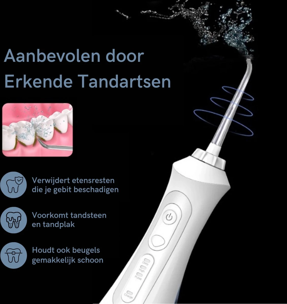 La saleté se coince souvent entre les accolades et les attelles. Ceci est difficile à enlever avec du fil dentaire, des brosses ou des cure-dents. L’avantage de l’eau est qu’elle peut atteindre les endroits les plus inaccessibles. L’hydropulseur Seago SG833 est l’option idéale pour éliminer la saleté et les particules alimentaires entre les appareils dentaires et les attelles. De cette façon, les dents restent saines et les gencives ne s’enflamment pas.