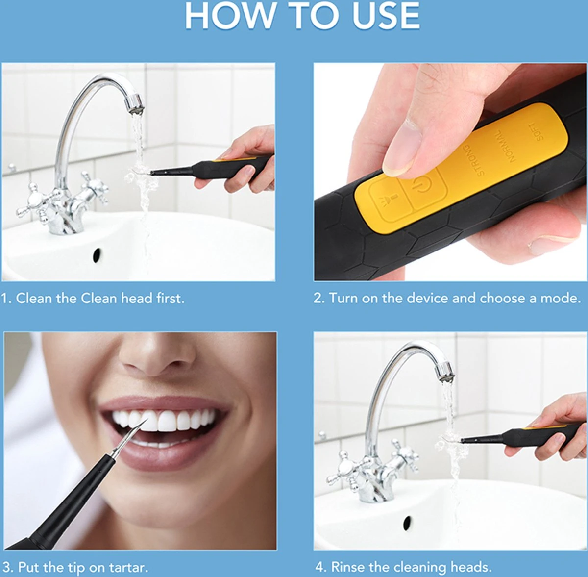 Caractéristiques: nettoyage efficace de la saleté des dents, tête de nettoyage amovible, facile à nettoyer, acier inoxydable de haute qualité, tête de travail avec lumière, contrôle intelligent du circuit, arc précis plus adapté, deux têtes de nettoyage (nettoyage interdentaire, nettoyage de la surface des dents)