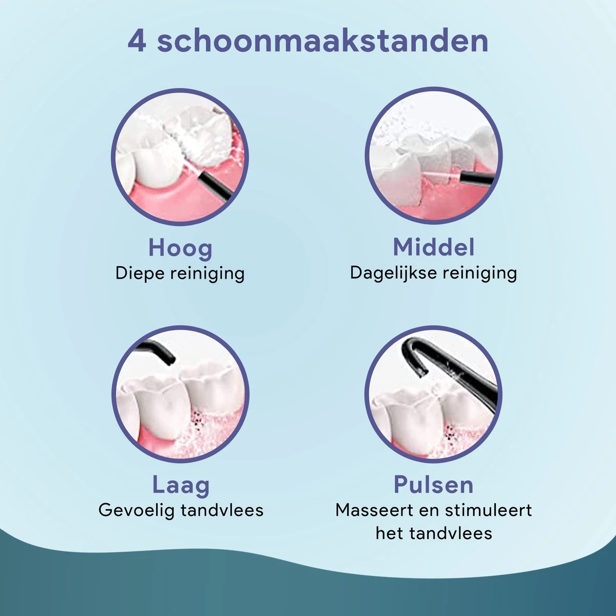 L’hydropulseur est livré avec 4 vitesses différentes. Cela rend l’ Trebin Trebin parfait pour chaque denture !