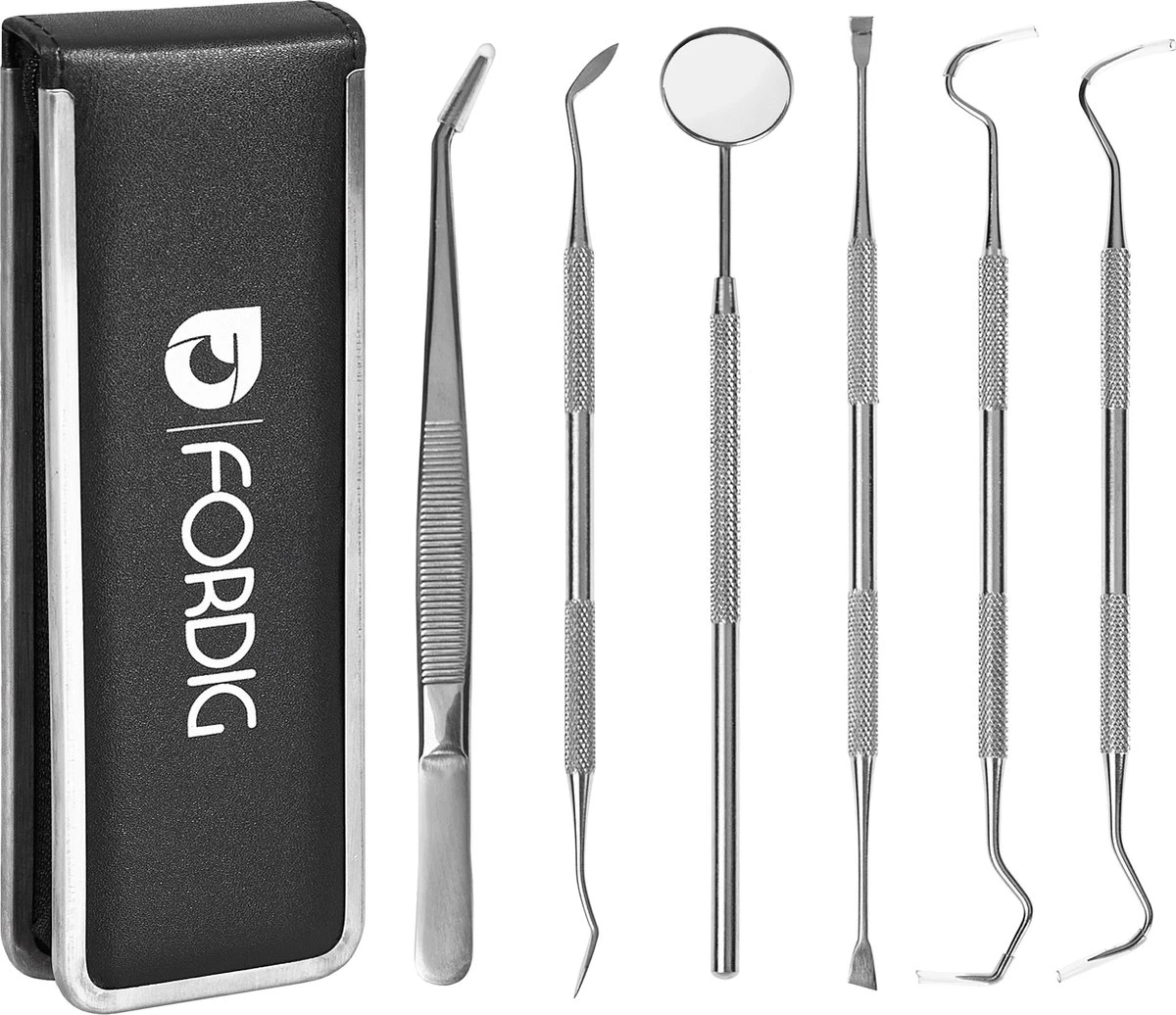 Cet ensemble de dentiste de ForDig est très complet et dispose de tous les outils pour garder vos dents en parfait état. L’ensemble se compose de divers crochets dentaires, d’un miroir buccal, d’une pincette et d’une trousse de rangement. Gardez vos dents d’une propreté éclatante.